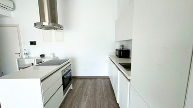 This apartment boasts a clean, contemporary design with high-quality finishes and an efficient Energy Rating A. The open-plan layout creates a spacious feel, flowing seamlessly between the kitchen and living area: